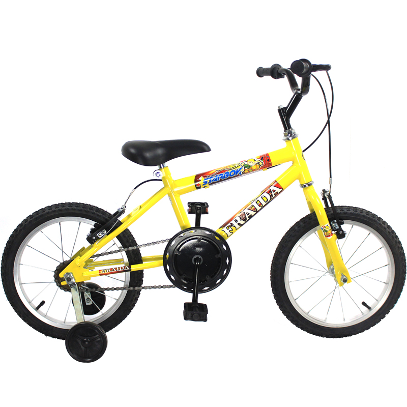 - Bicicleta no aro tamanho 16, modelo passeio, quadro em aço carbono, mesa modelo standard, freios V-brake, rodas de nylon reforçado, uma bicicleta com estilo infantil, ótima para aprendizagem.