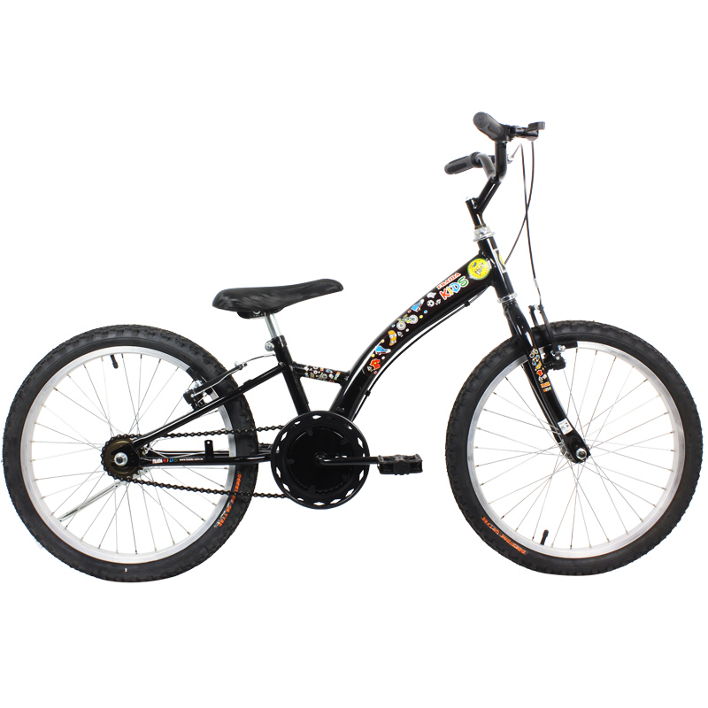 - Bicicleta no aro tamanho 20, modelo monotubo, quadro em aço carbono com curva baixa no centro do quadro para melhor adaptação de crianças que estão aprendendo,